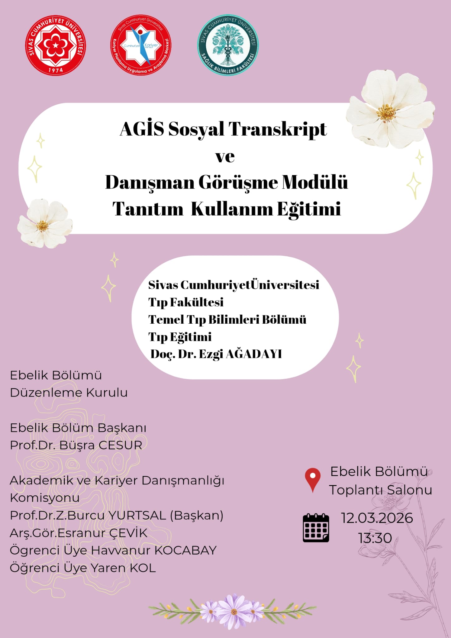 Ebelik Bölüm Öğrenci Akademik ve Kariyer Danışmanları ve Saatleri